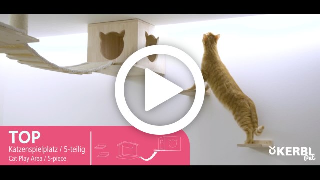 consisting of two steps for wall mounting as well as a cave and an open cat temple with removable supports for ceiling mounting