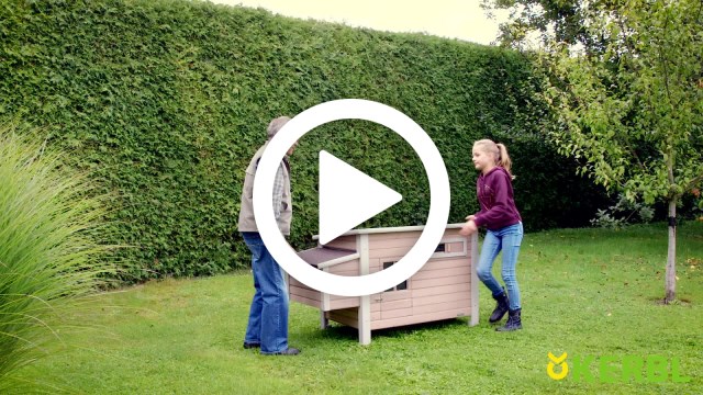 Weatherproof and easy to install: the hinged bitumen roof with fixings provides reliable protection from the rain and facilitates access to the interior. Made from varnished spruce, the hutch is delivered disassembled in a cardboard box and is easy to assemble.