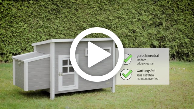 Sophisticated design for chickens: with 2 laying nests, two perches, sliding windows for ventilation and extended feet for floor ventilation, the coop offers species-appropriate comfort and optimum housing conditions.